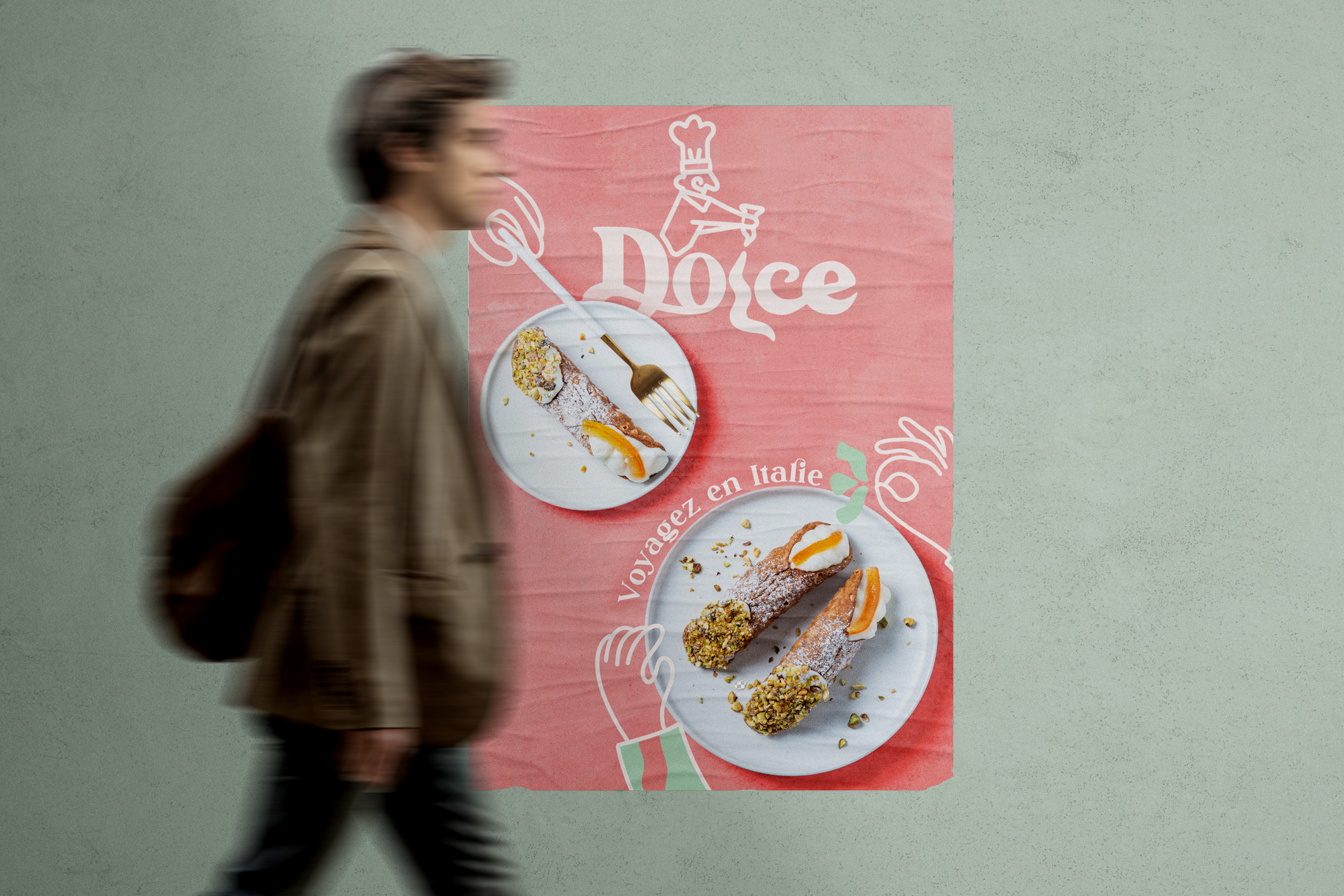 L’objectif créatif : Donner à Dolce une personnalité forte, capable d’attirer une clientèle jeune, urbaine, en quête de gourmandise, tout en affirmant la qualité artisanale et l’accessibilité de la marque.