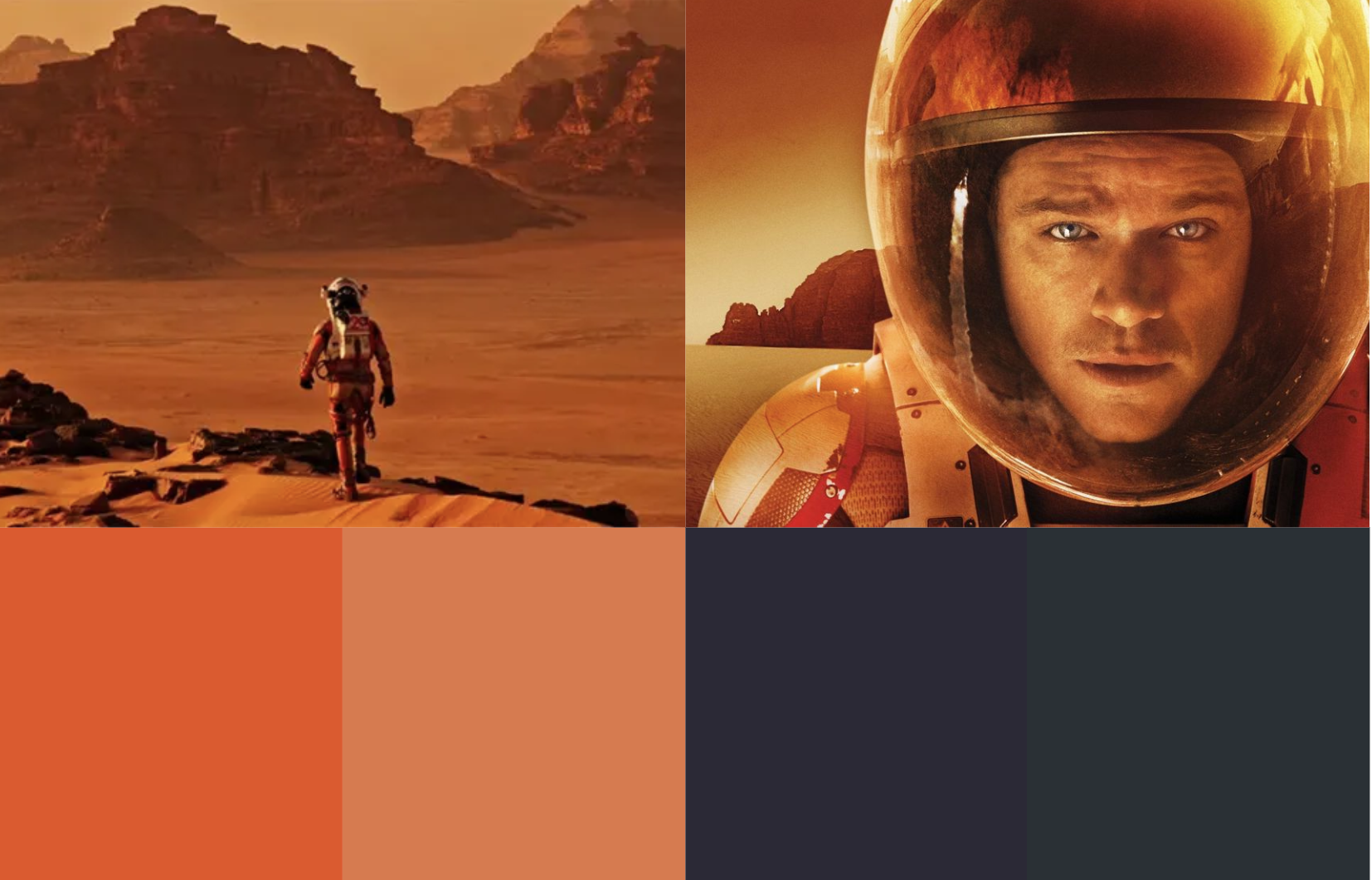 Mon choix s'est porté sur l'orange comme teinte principale. Cette couleur, en plus de représenter la teinte de la planète, respecte également la colorimétrie du film que j'ai choisi, ajoutant ainsi une touche fantastique et immersive au visuel.